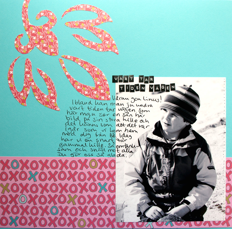 det känns som det var evigheter sen jag scrappade och jag är så sugen. tar med mig sakerna till landet när jag, linus och noah åker dit nästa vecka så andreas får snickra i lugn och ro. här kommer i alla fall några layouter som jag gjorde för ett tag sedan.